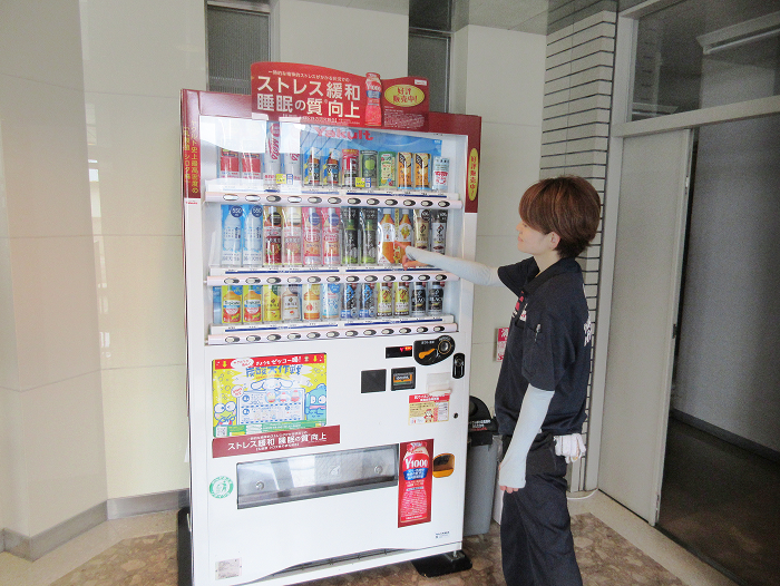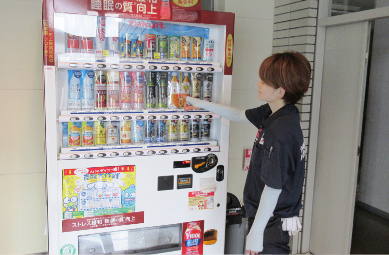 - 施設や幼稚園への給食用商品の配達と、地域の自動販売機への商品補充を担当しています。
