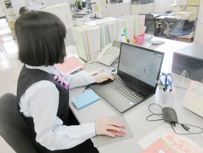 デスクワークを中心に営業部門のサポートをする営業事務、電話・来客対応・伝票入力等の一般事務、会社内の設備管理・備品管理業務、会社経営に関わる経理業務等の幅広い仕事内容となります。