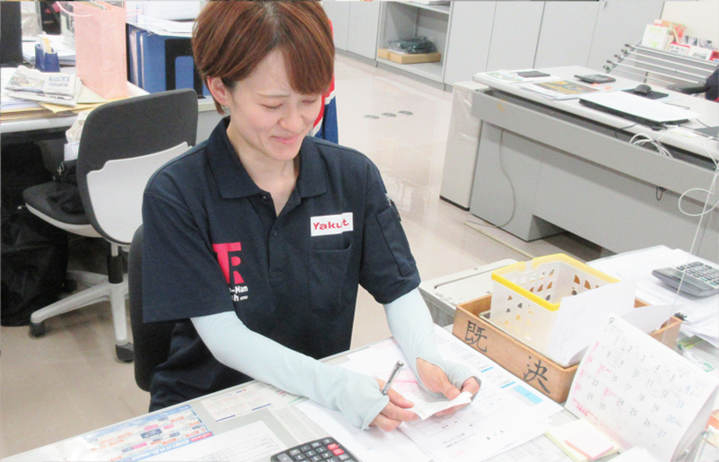 - ヤクルトレディのサポートや育成、センター内での運営や商品在庫の管理、またお客さまとの信頼関係づくりに取り組んでいます。