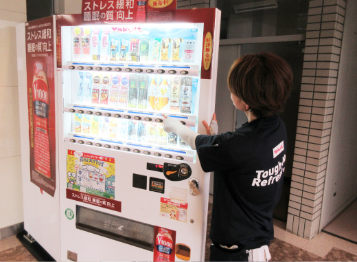 「スーパーなどの量販店」「学校、病院、老人ホームなどの給食」「パチンコホール・レジャー施設」「企業、施設先での自動販売機」を中心にヤクルトレディではサービスを提供できないお客さまへ対応しております。