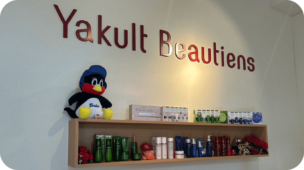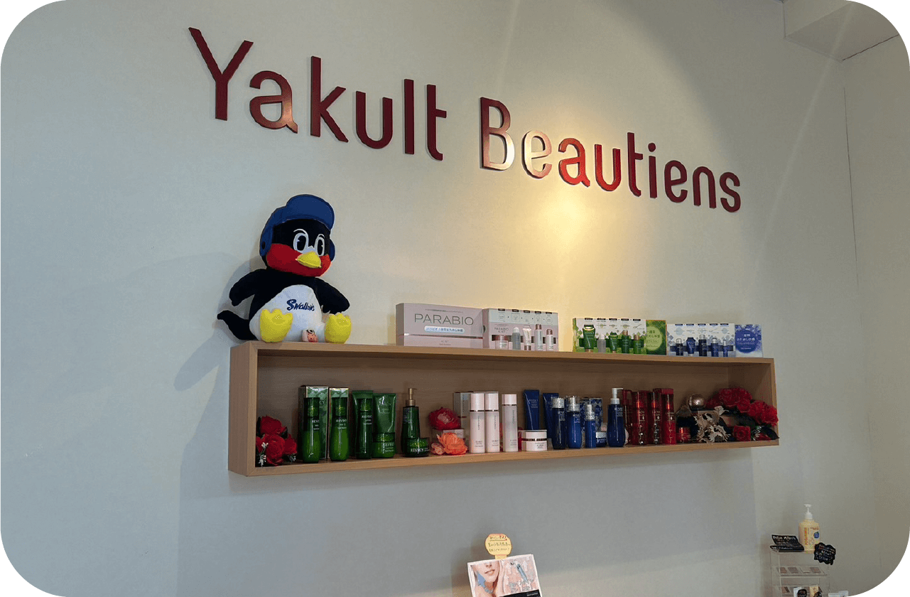 当社にはエステサロンが4店舗あります。ヤクルトのエステサロンでは、乳酸菌生まれの保湿成分を配合した化粧品を使い、お肌の状態や悩みをお伺いし、お客さまに合うフェイシャルトリートメントを実施しています。