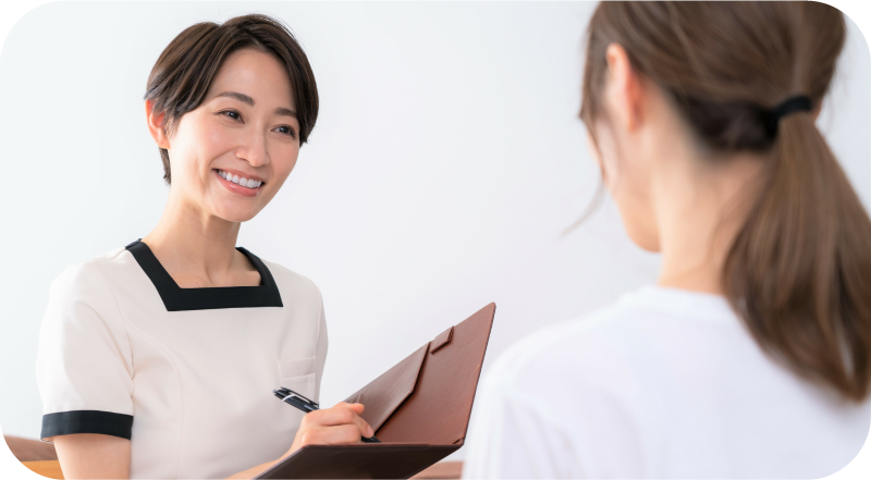 お客さまのお肌の状態やお悩み、なりたいお肌をしっかりと伺ったうえで、お一人おひとりに合わせて実施いたします。