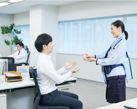 担当エリアの個人宅、職域などへヤクルト製品のお届け業務を行います。併せて、健康情報の提供やお客さまとの日常会話から健康状況を確認するのも重要な仕事です。